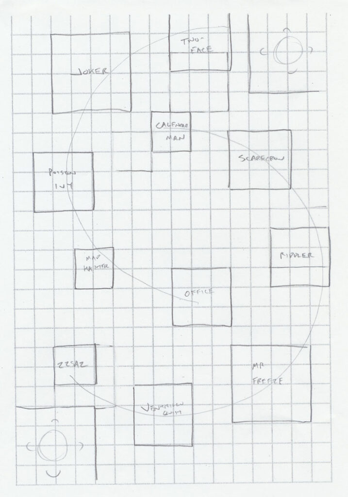 Map: The Asylum High concept: Arkham Asylum, where Batman’s villains are locked away…until they break out again.